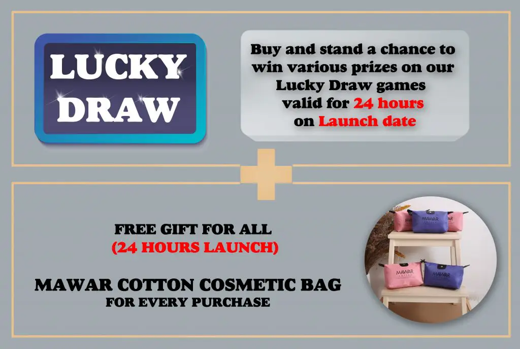 Buy any Casual Wear product and you will eligible to join our lucky draw valid for 24 hours on a launch date and also claim your gift Mawar Cotton Cosmetic Bag on the same date for 24 hours