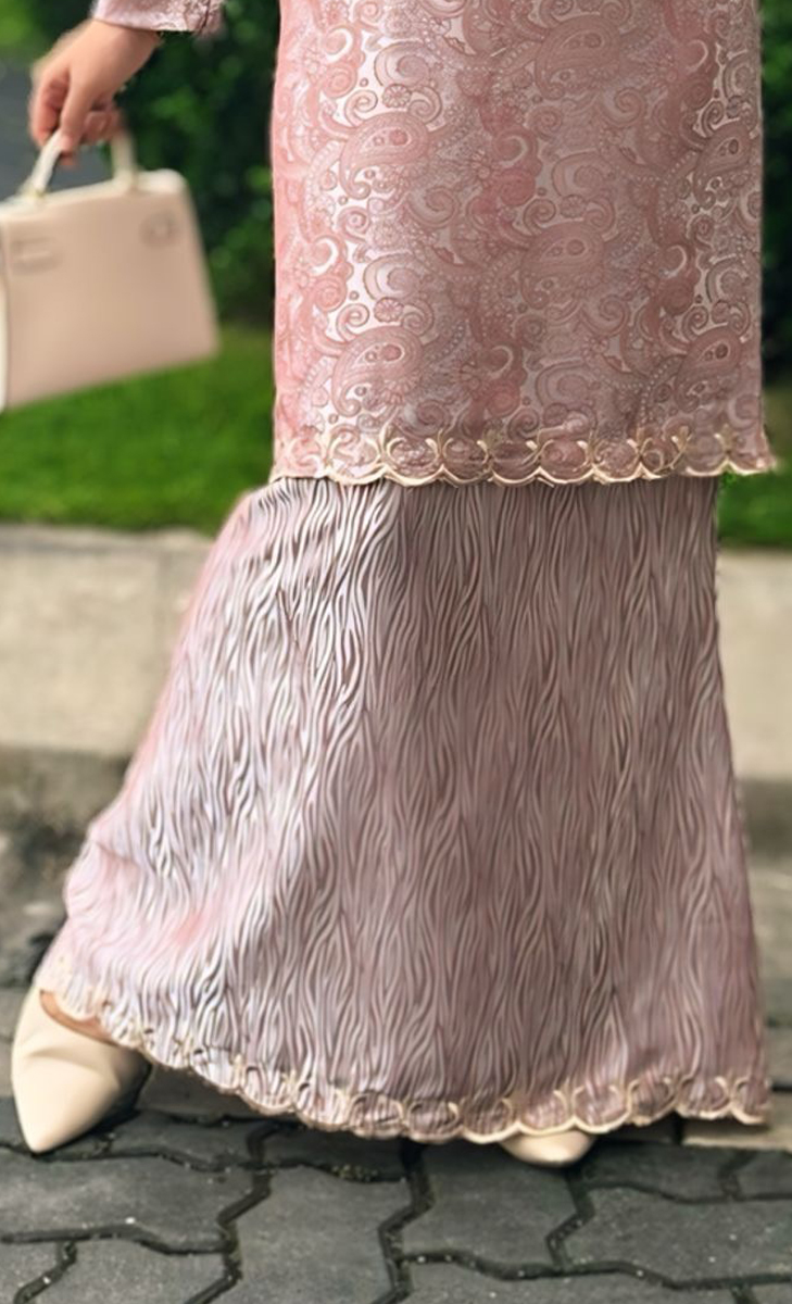 – hiasan custom sulaman scallop di keliling bawah baju
