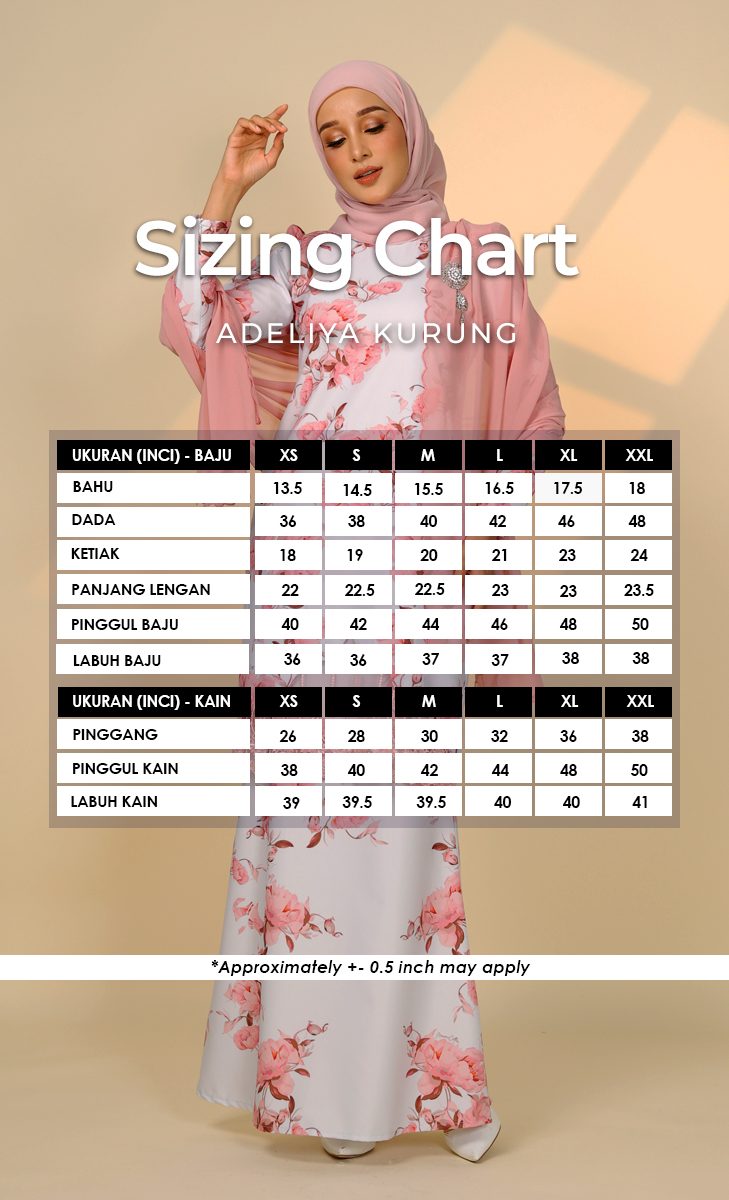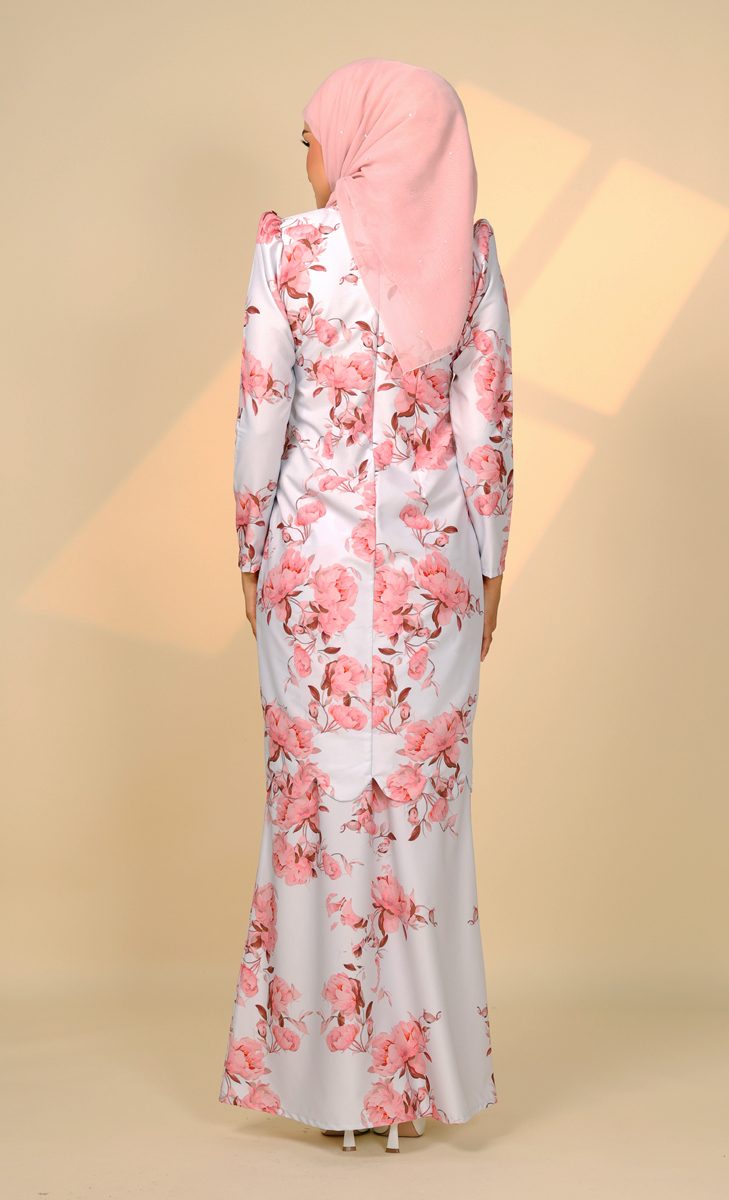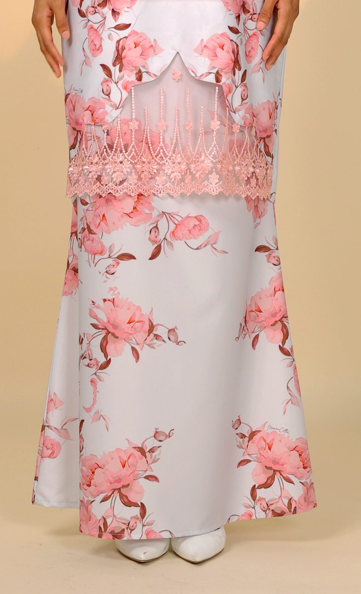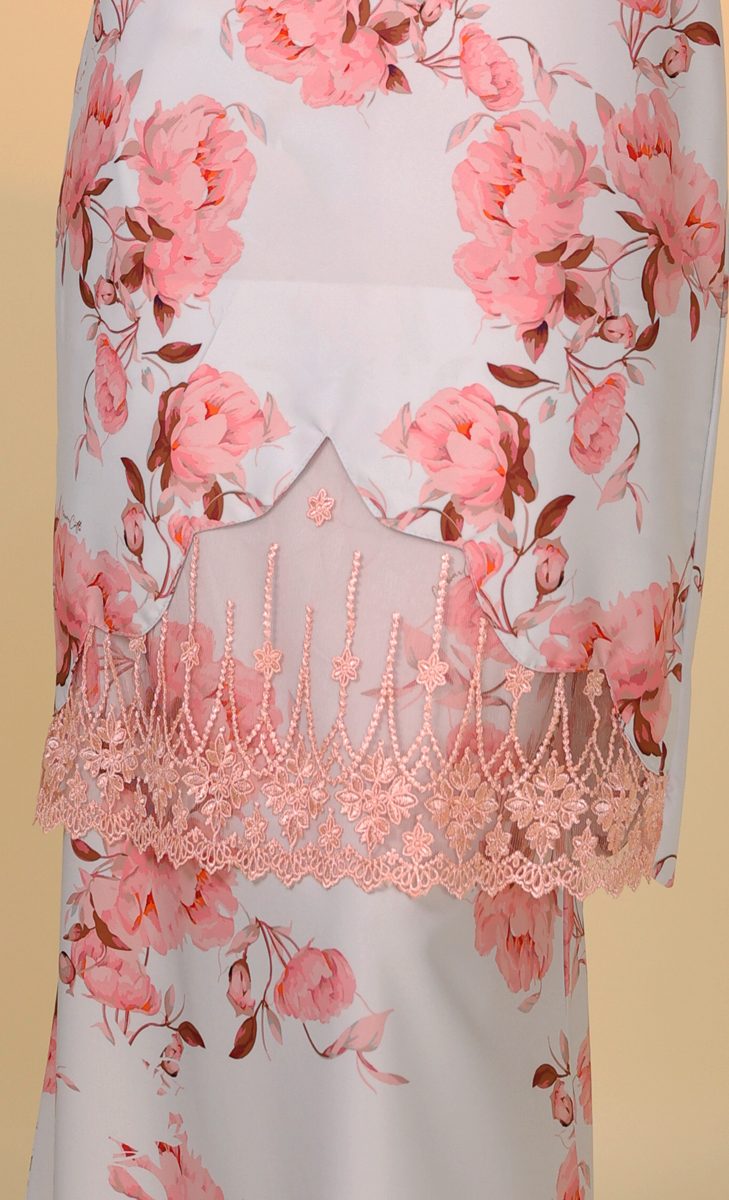– Custom Printed Floral Design with Full Scallop pattern at bottom blouse kurung (Feminine Look & Elegant)