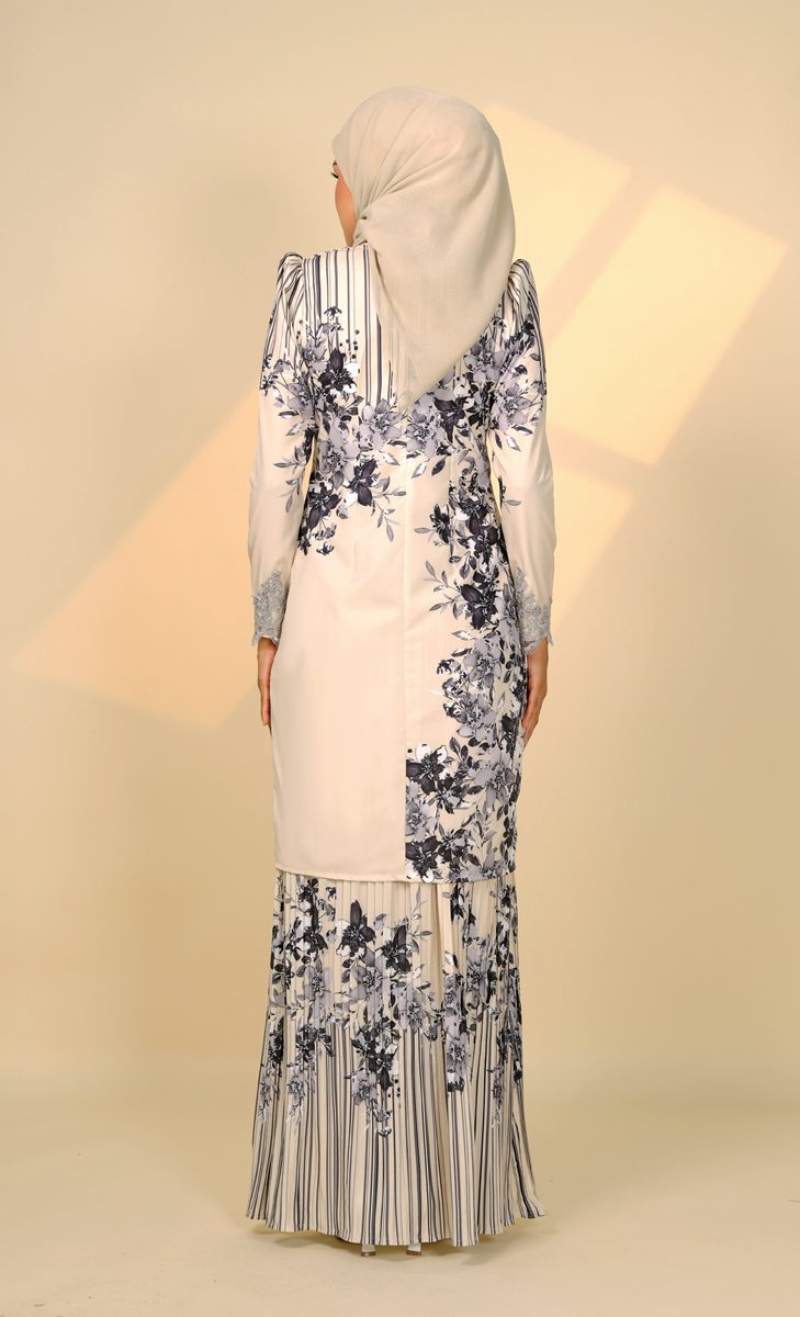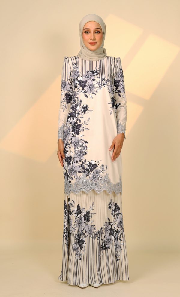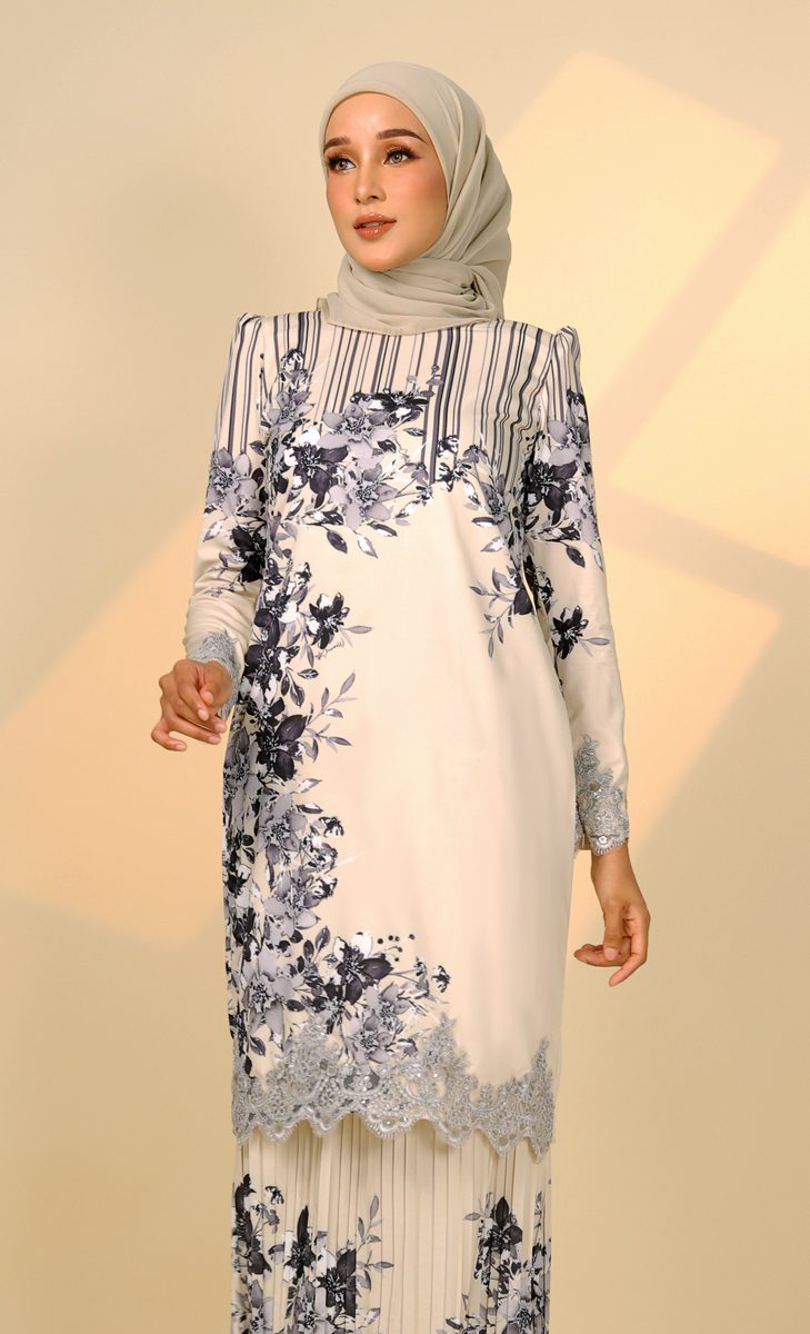 – Custom Printed Floral Design with Embroidery Border Lace at front blouse kurung (Feminine Look & Elegant)