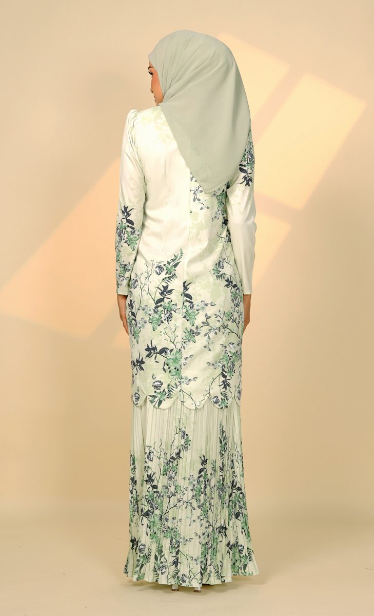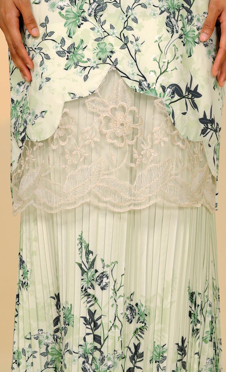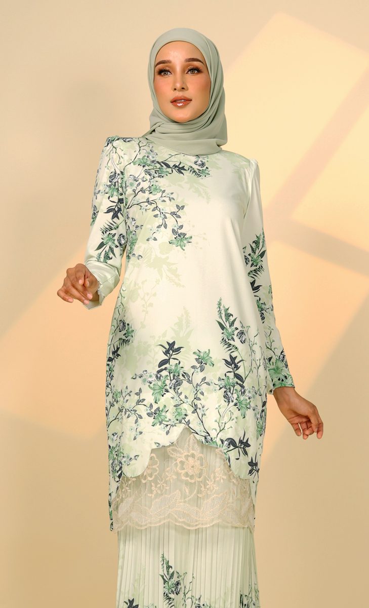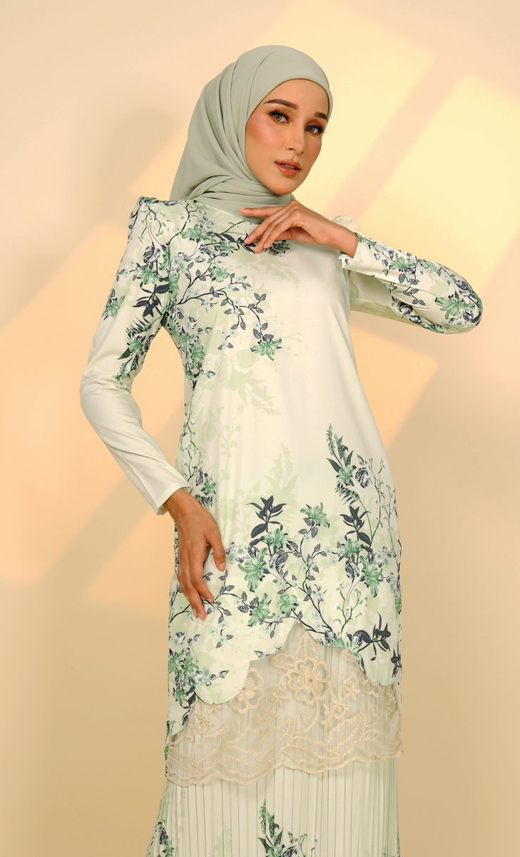 – Custom Printed Floral Design with Full Scallop pattern at bottom blouse kurung (Feminine Look & Elegant)