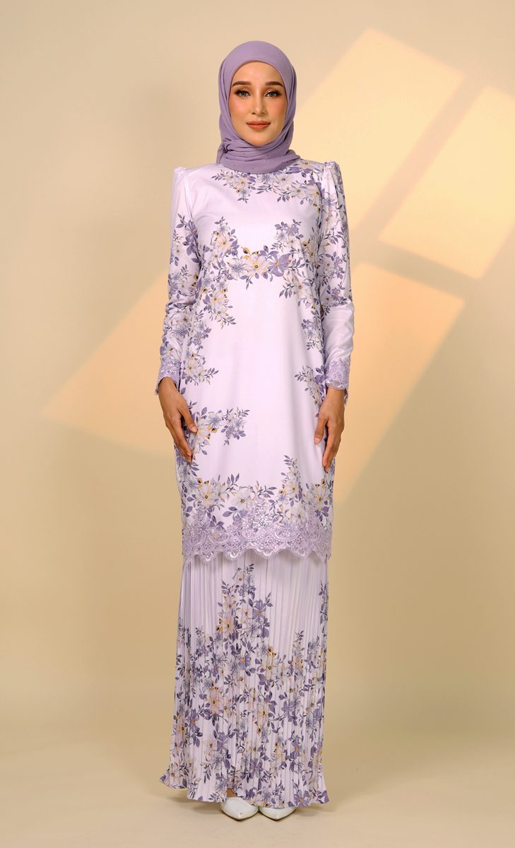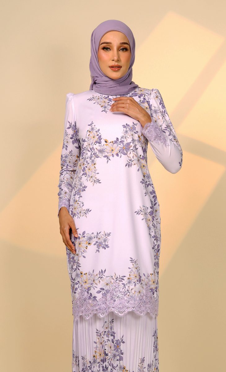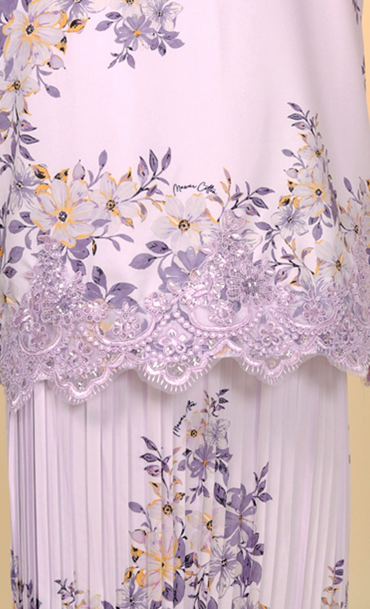 – Custom Printed Floral Design with Embroidery Border Lace at front blouse kurung (Feminine Look & Elegant)
