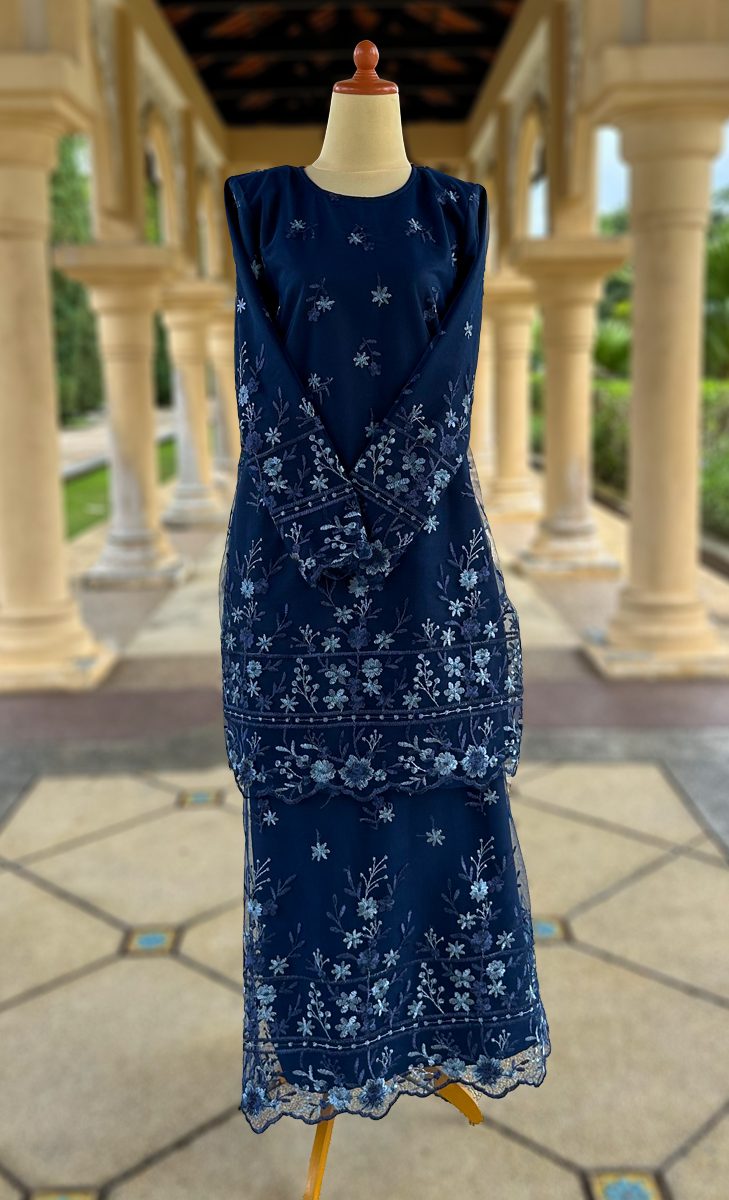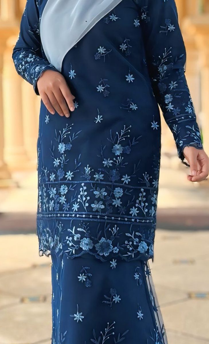 – “full lace” tulle dengan hiasan sulaman corak bunga ( Flower & Scallop Embroidery) di bahagian tangan & bawah keliling baju