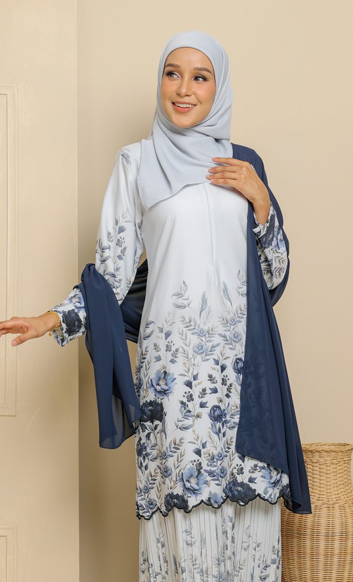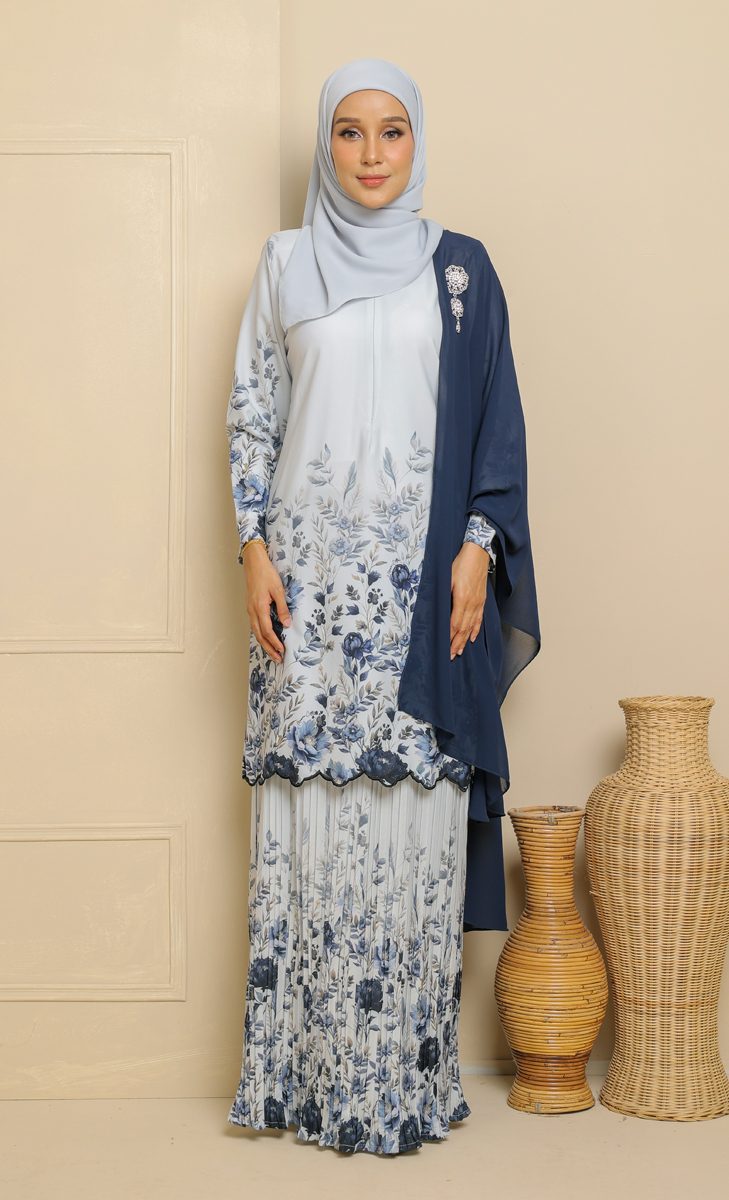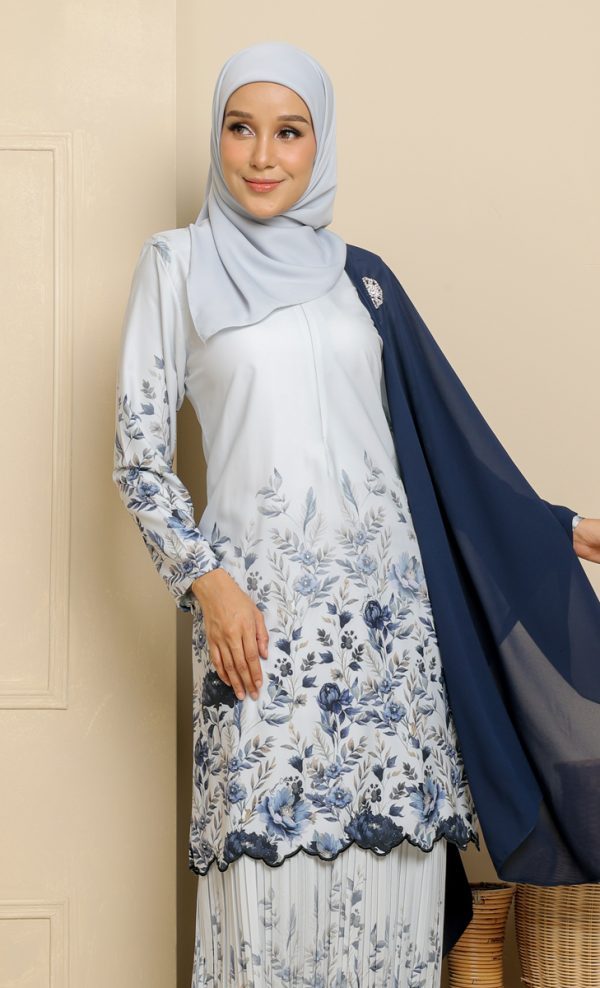 – Custom Printed Floral Design with Full Embroidery at bottom blouse kurung (Feminine Look & Elegant)