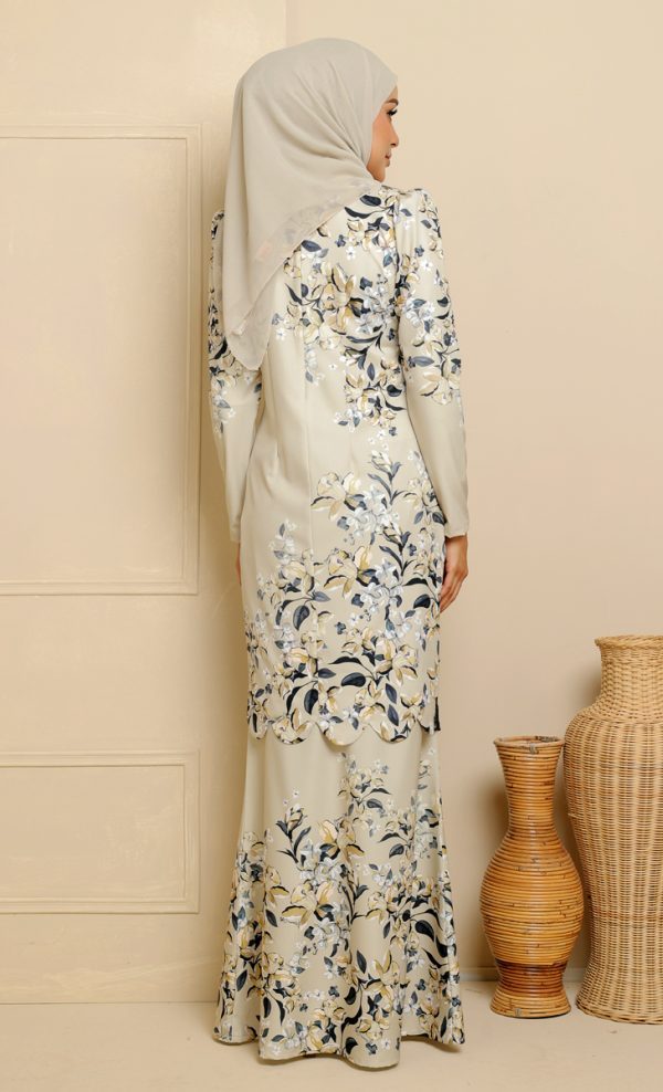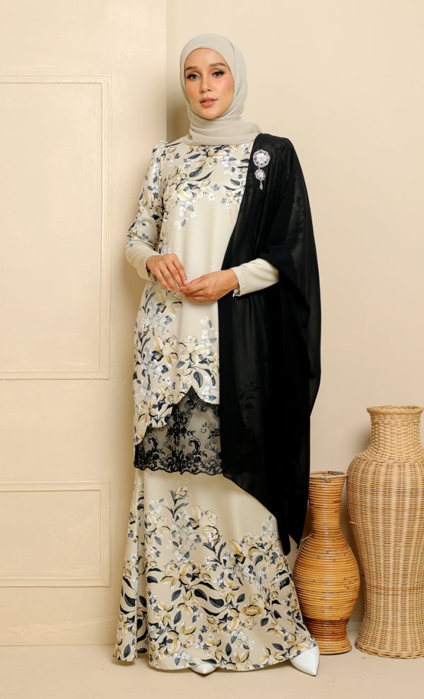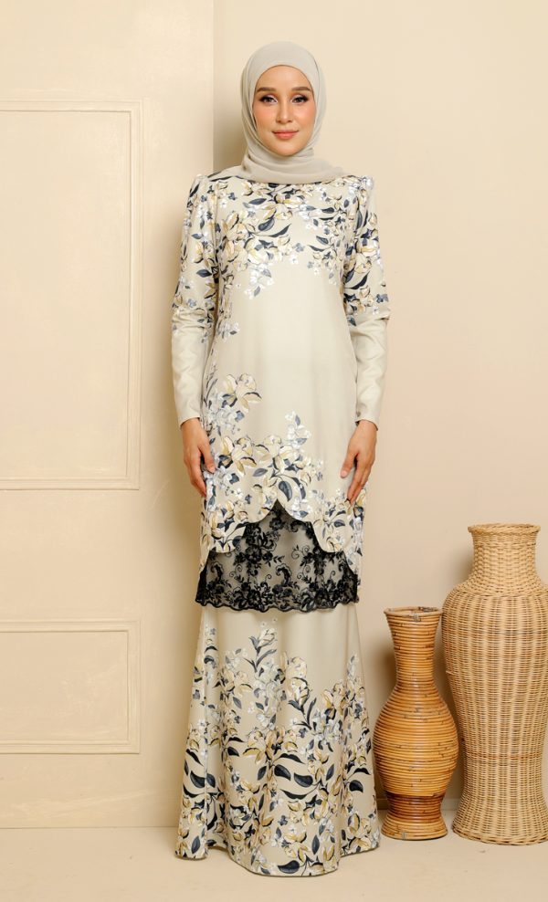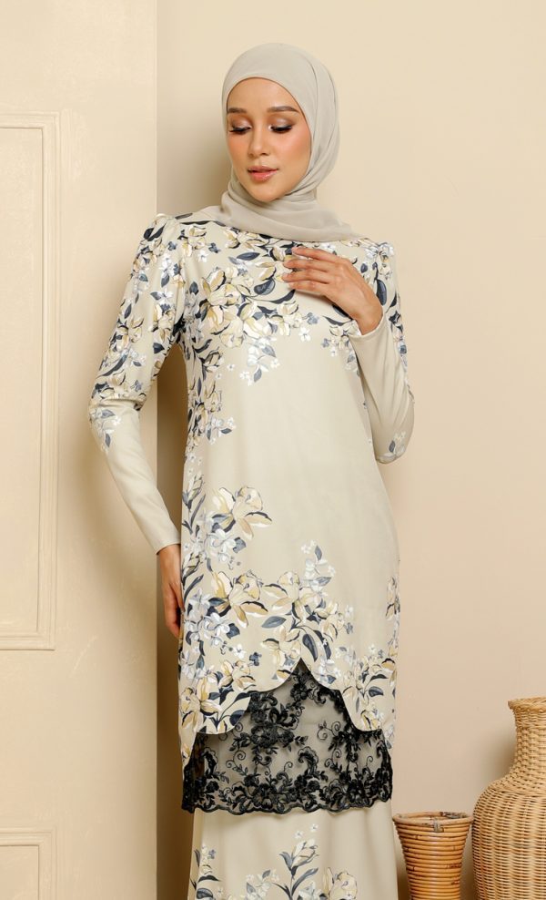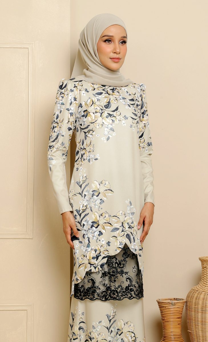 – Custom Printed Floral Design with Full Scallop pattern at bottom blouse kurung (Feminine Look & Elegant)