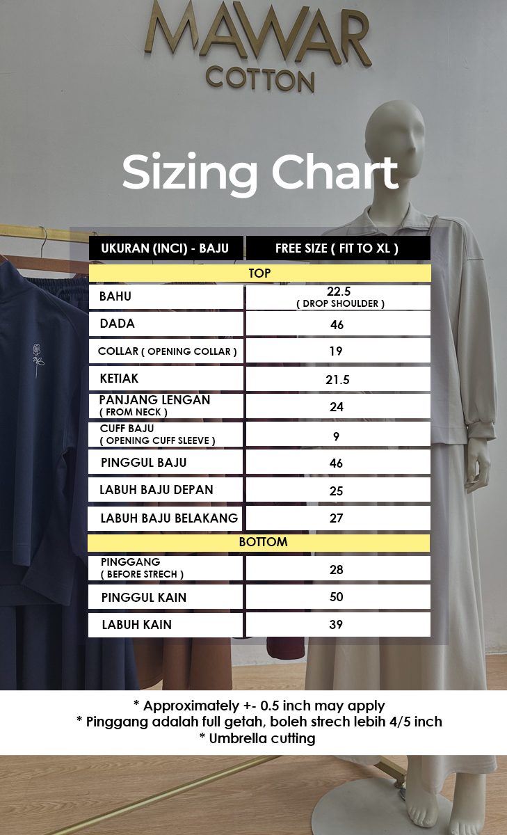 | SIZE | FREE SIZE (FIT XS TO XL) |