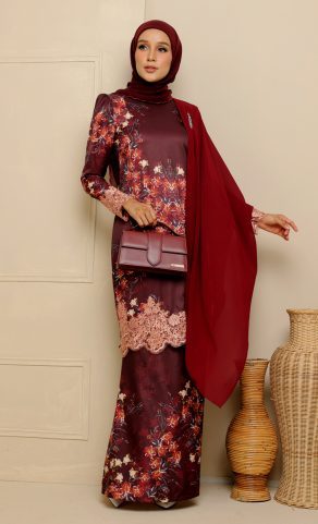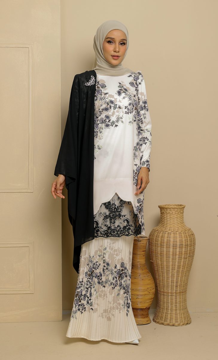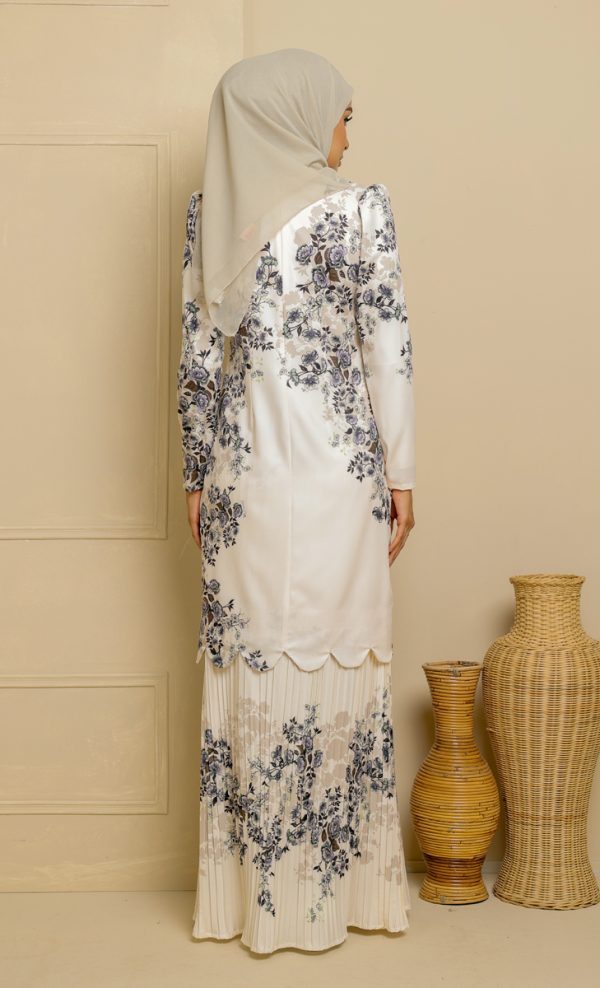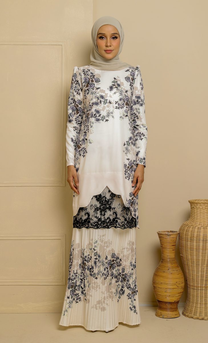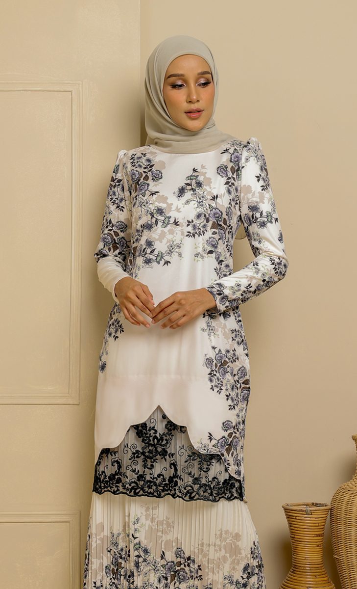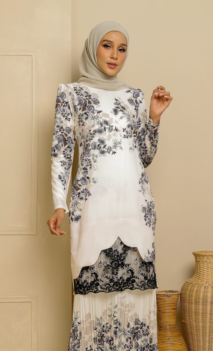 – Custom Printed Floral Design with Full Scallop pattern at bottom blouse kurung (Feminine Look & Elegant)