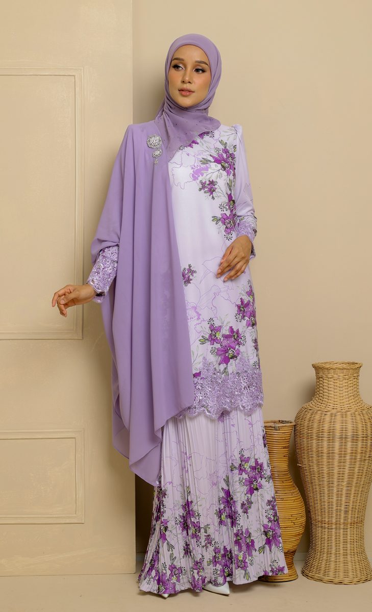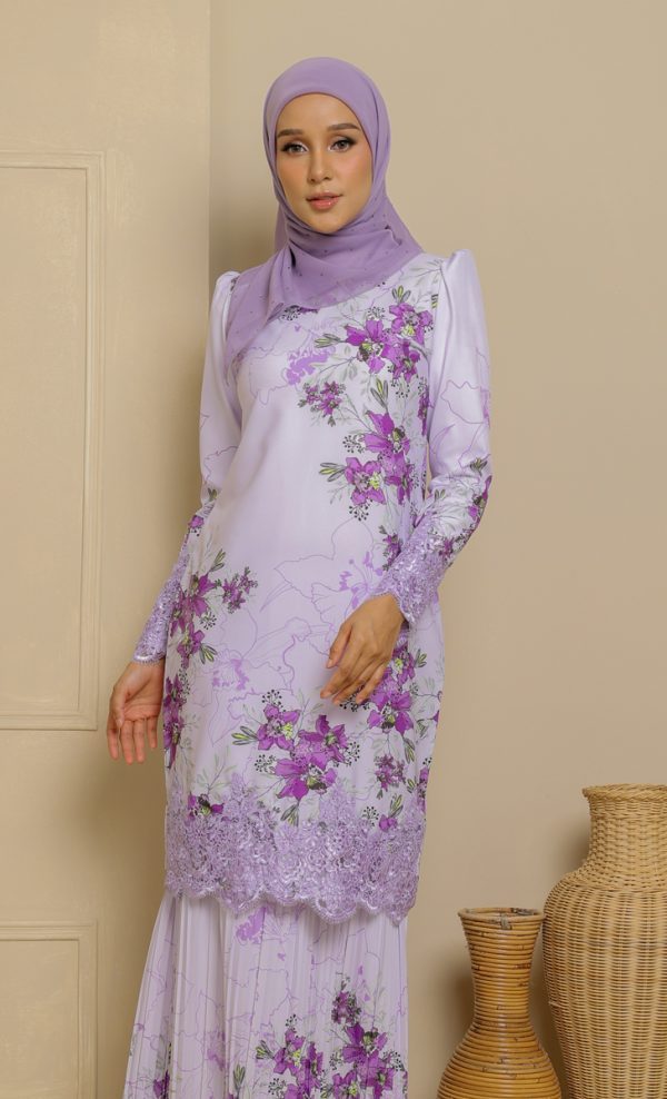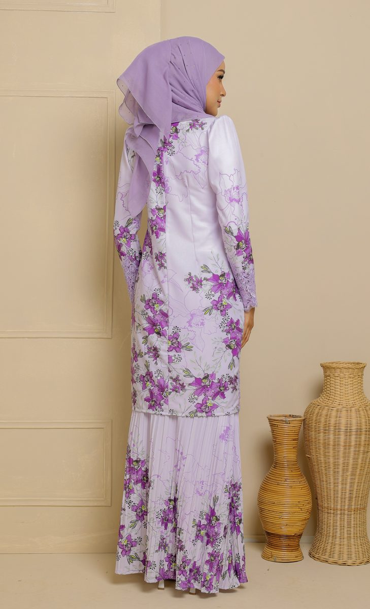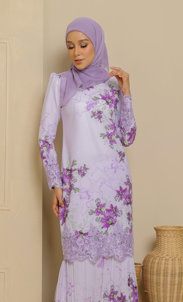 – Custom Printed Floral Design with Full Scallop pattern at bottom blouse kurung (Feminine Look & Elegant)