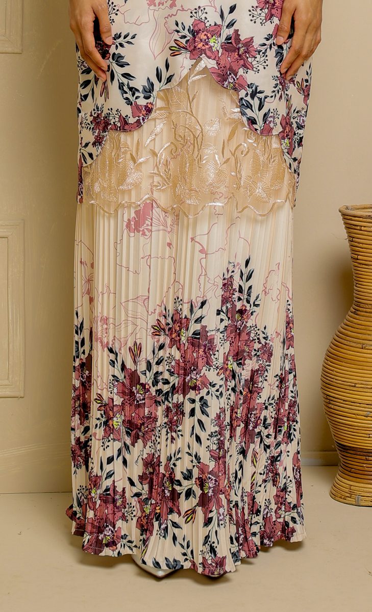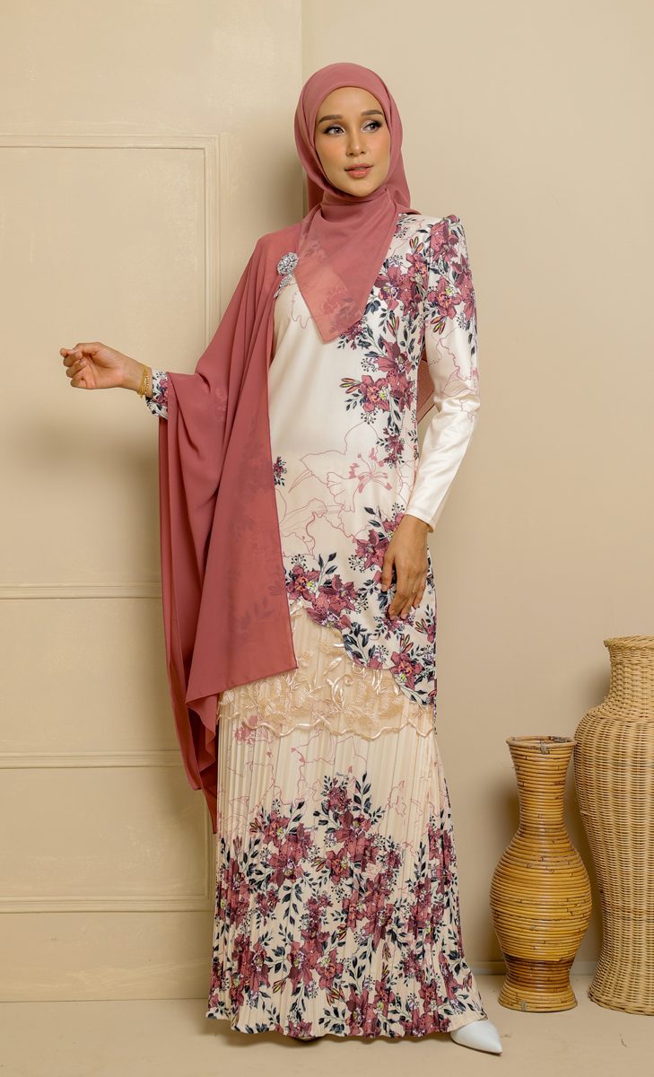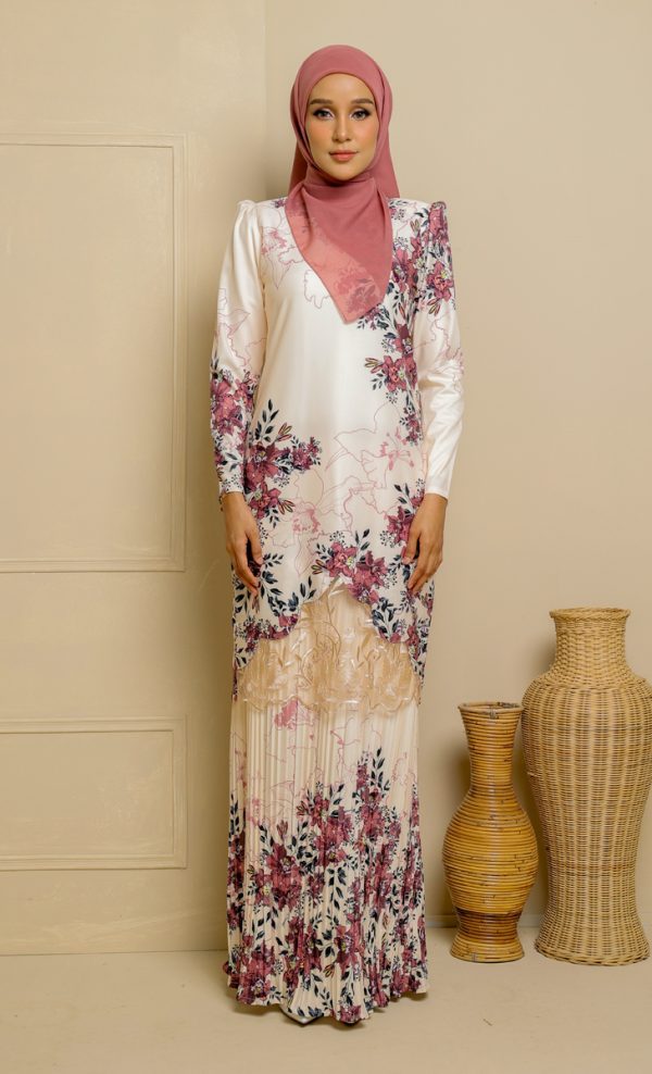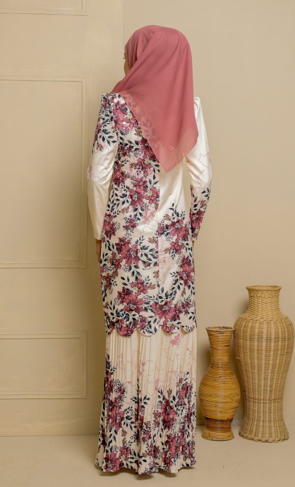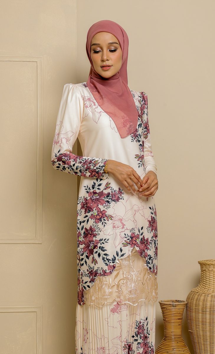 – Custom Printed Floral Design with Full Scallop pattern at bottom blouse kurung (Feminine Look & Elegant)