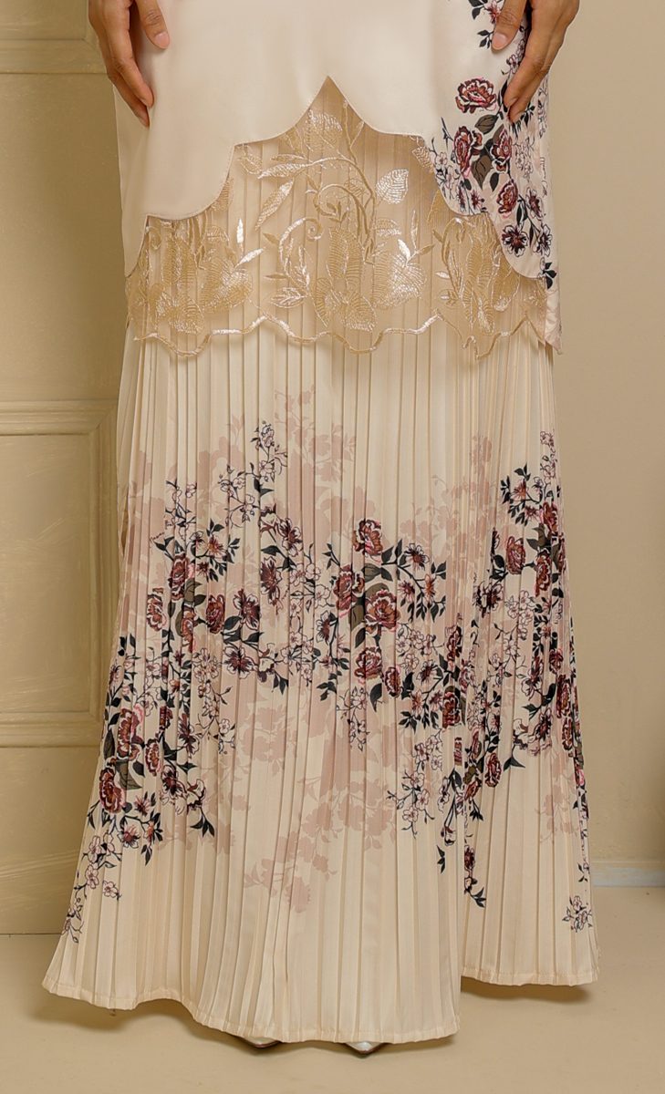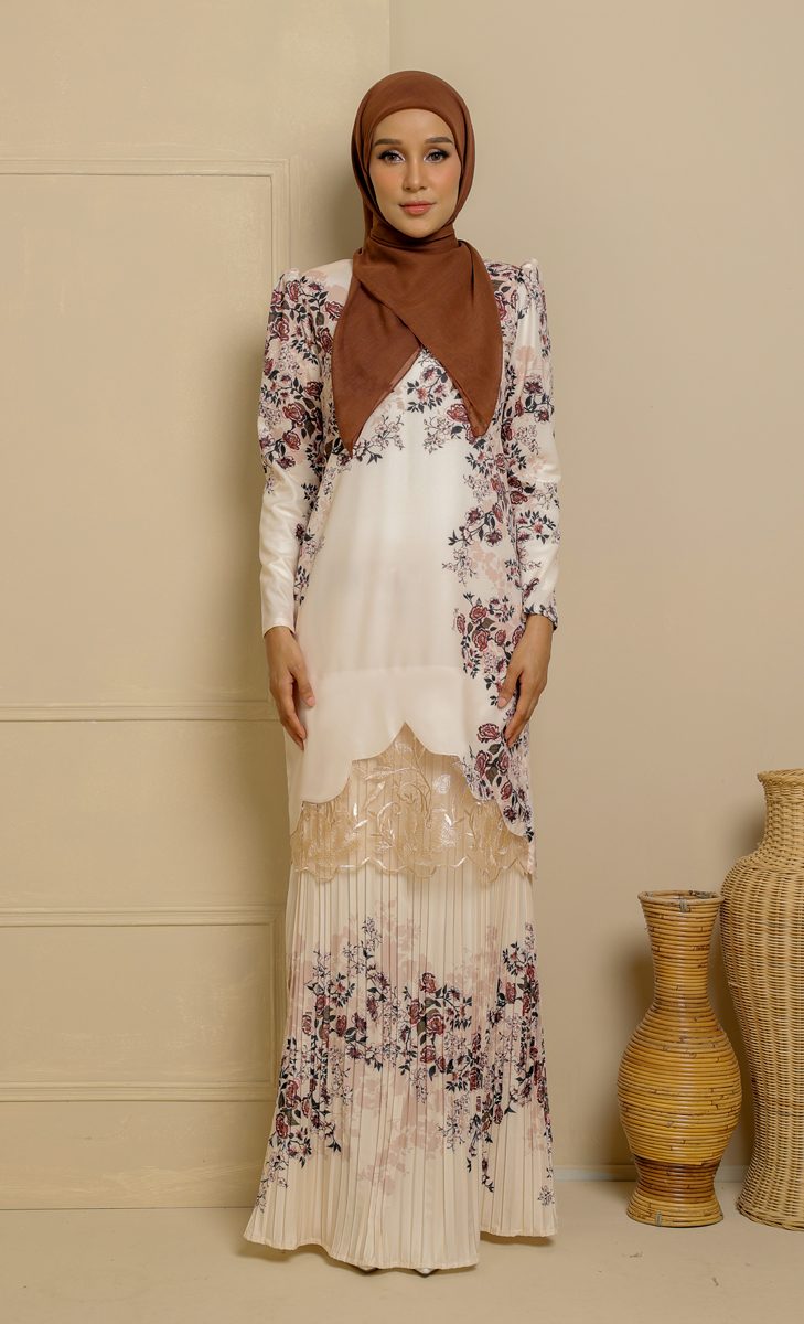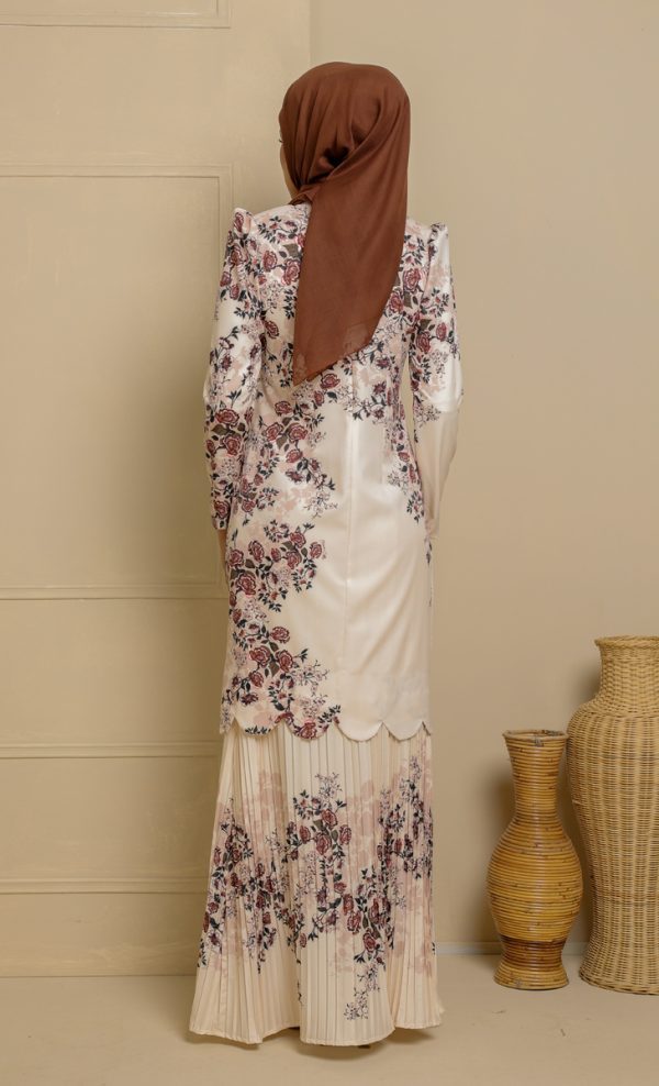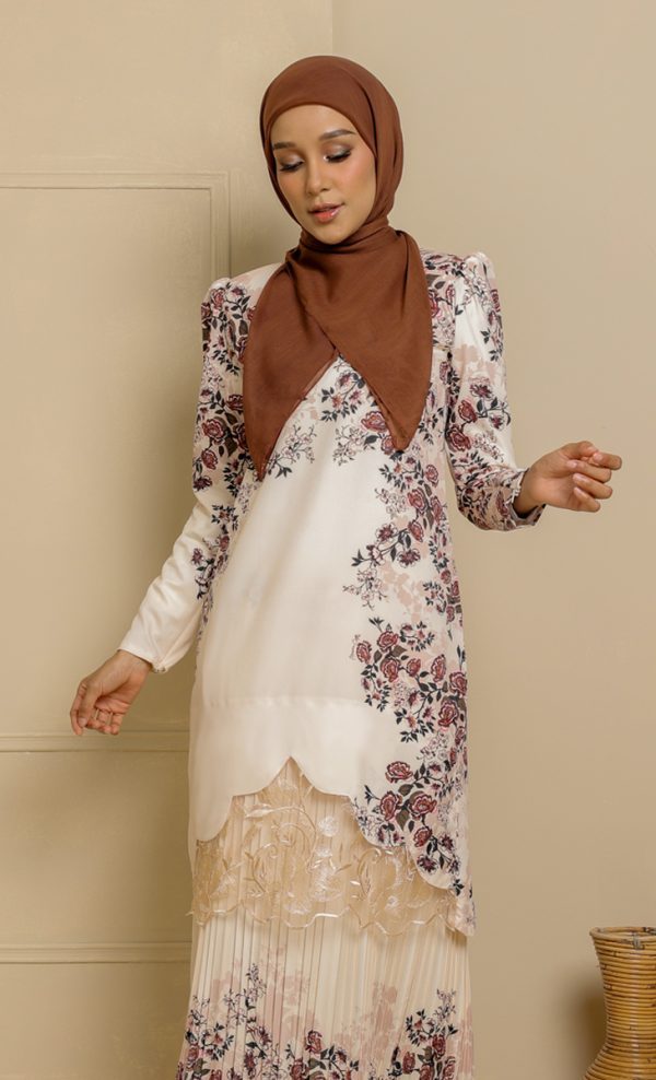 – Custom Printed Floral Design with Full Scallop pattern at bottom blouse kurung (Feminine Look & Elegant)